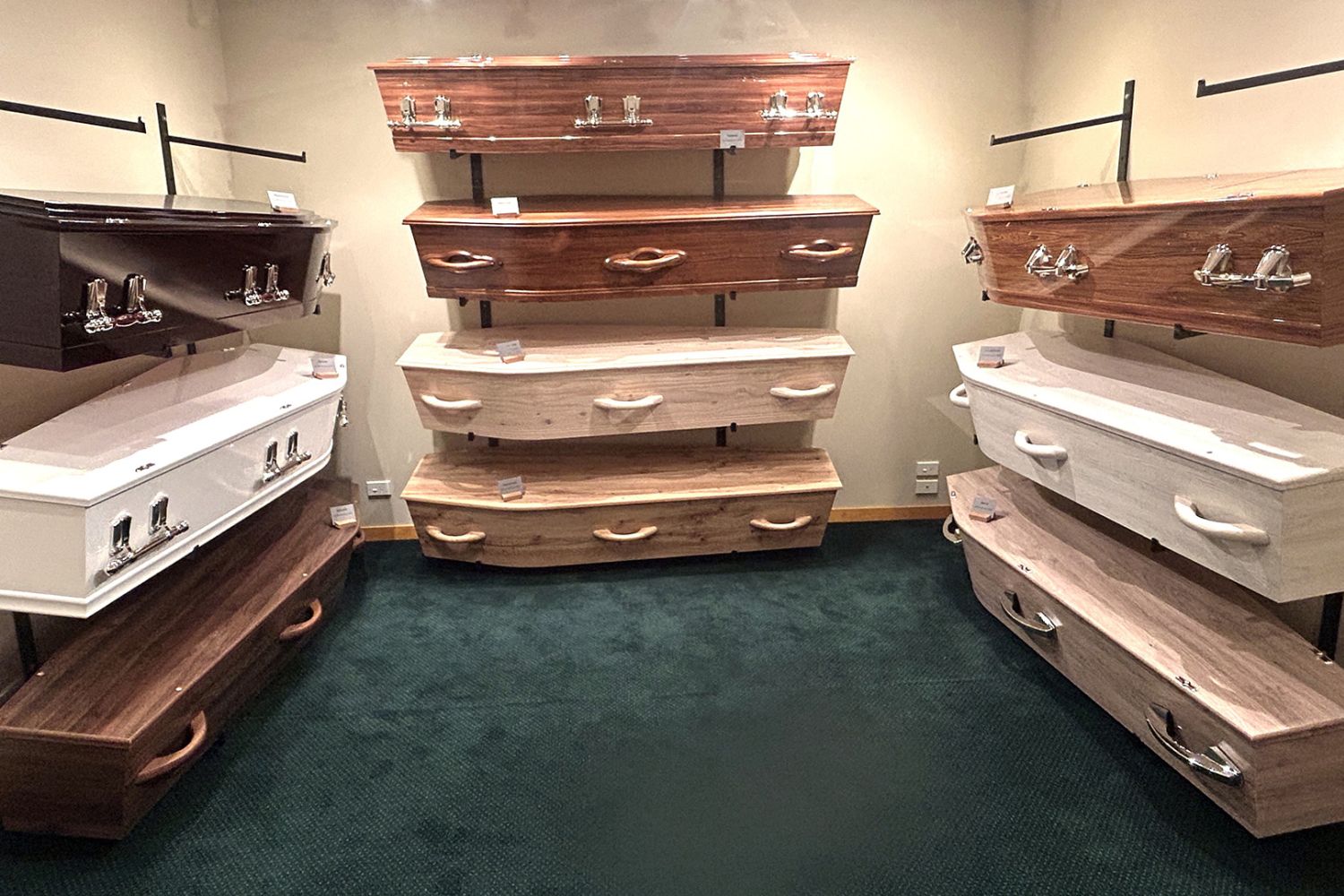 Our funeral directors can assist you when choosing a casket. We can sit down with you in the comfort of your own home and show you through our catalogue, or you can view our full selection here. Choices can depend on appeal, cost and what is regarded as a suitable tribute to your loved one.