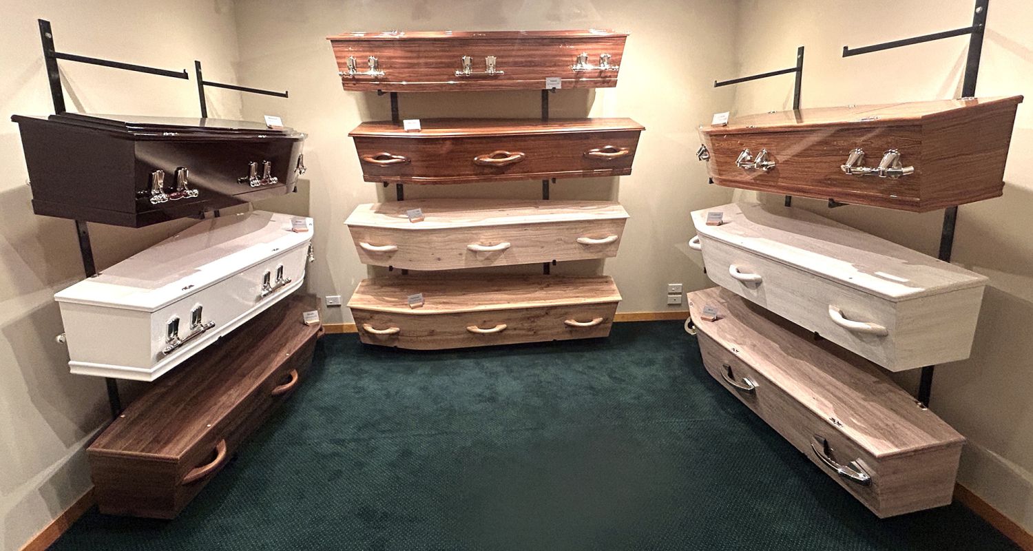 Our funeral directors can assist you when choosing a casket. We can sit down with you in the comfort of your own home, or at our office and show you through our catalogue. Choices can depend on appeal, cost and what is regarded as a suitable tribute to your loved one.